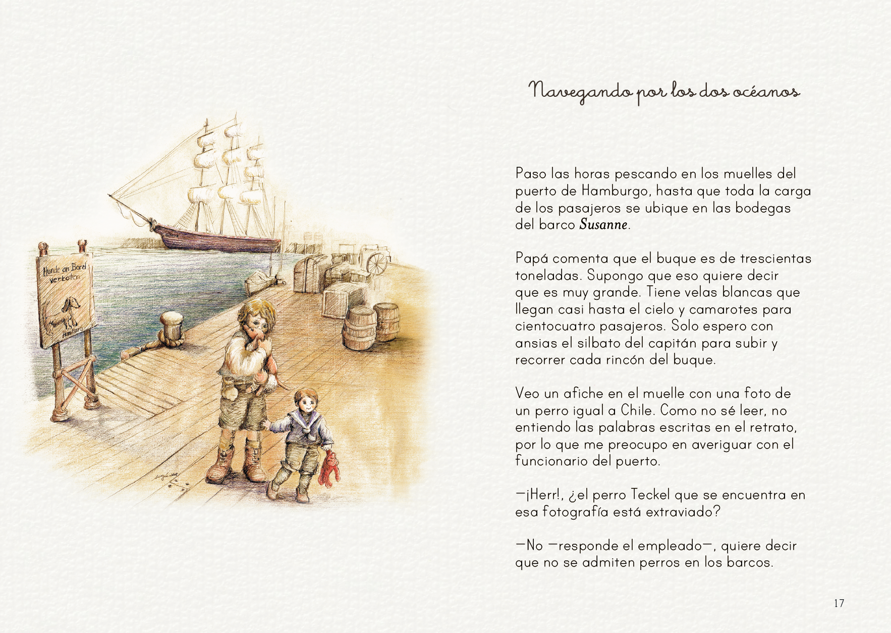 El pequeño Karlchen narra su travesía y la de su familia desde Alemania hasta el sur de Chile, a mediados del siglo XIX. La vida en Europa se había vuelto especialmente difícil, producto de las guerras y las crisis económicas, por lo que millones de personas soñaban con emigrar a América, tierra de oportunidades. Motivados por un tío explorador que conocía el país, la familia de Karlchen decidió emprender el viaje para colonizar nuevas tierras en el fin del mundo. Este apasionante relato nos invita a recorrer los orígenes de la colonización alemana del sur de Chile desde la mirada de un niño.